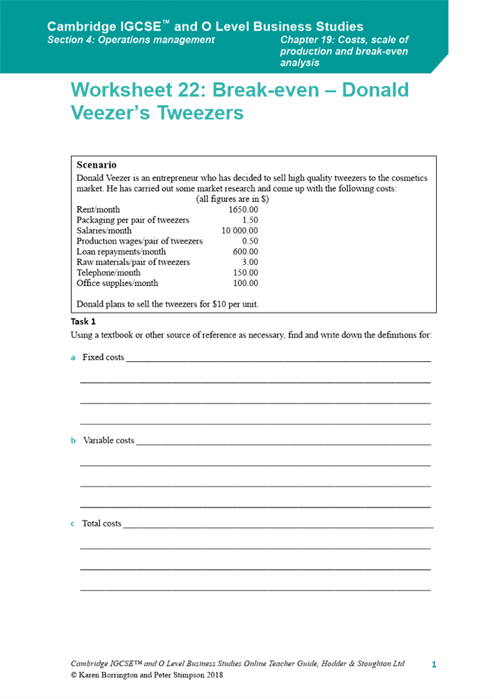 39, these directions provide a general introduction to the contents of each worksheet. Using the earlier example, let's say that . Click on the tab with the worksheet titled activity 1 to begin. To calculate the sales needed to generate a target profit . I have found these resources useful for introducing break even to reasonably low ability. And when all your costs and sales are entered, our restaurant break even worksheet gives you your . Review the activity below or download the pdf student worksheet. E2 break even analysis worksheet q1 vinyl resting place is an independent record shop, located in the heart of london. Easy to follow and a good introduction to break even point. The break even analysis workbook is a powerful business tool widely used across all industries to evaluate financial performance in terms of revenues and .